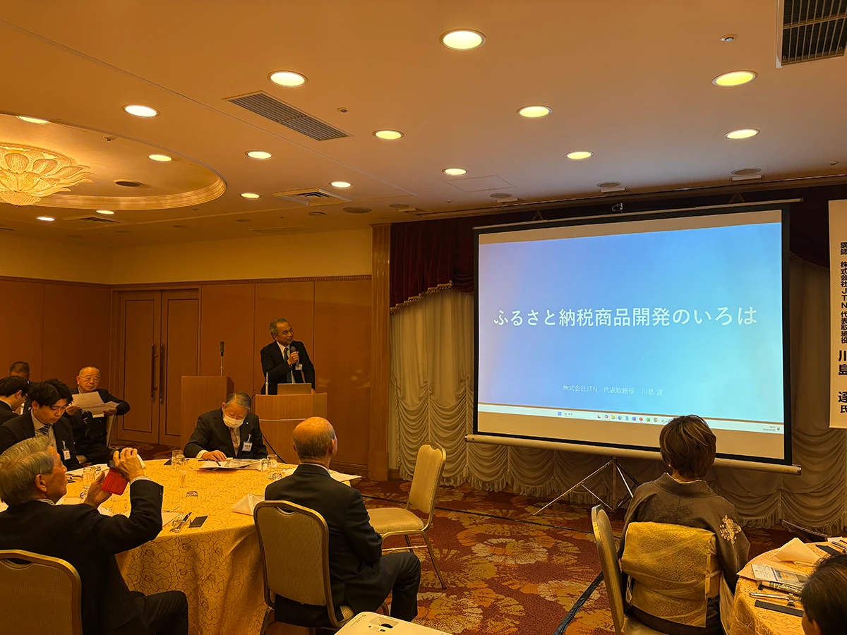 冒頭に株式会社JTNの川島様より「ふるさと納税商品開発のいろは」と題してご講演をいただき、ふるさと納税や長野県根羽村での地方活性の取り組みなどについてお話を伺いました。